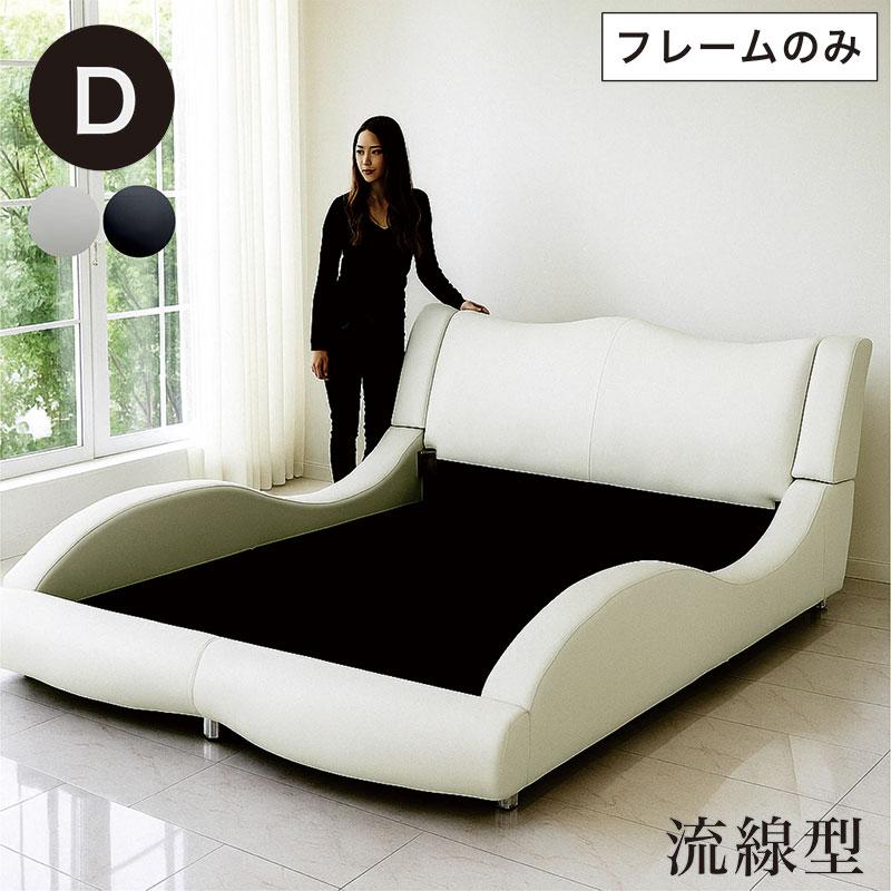 送料無料 ベッドフレームのみ ウッドスプリングを採用した寝心地もいいベッド 選べる2色 ホワイト ブラック 人気のフレーム モダンなベッド ベッド ダブル ダブルベッド ベッドフレーム モダン デザイナーズ 流線型 スーパーソフトレザー 合皮 Apuレザー ウッド